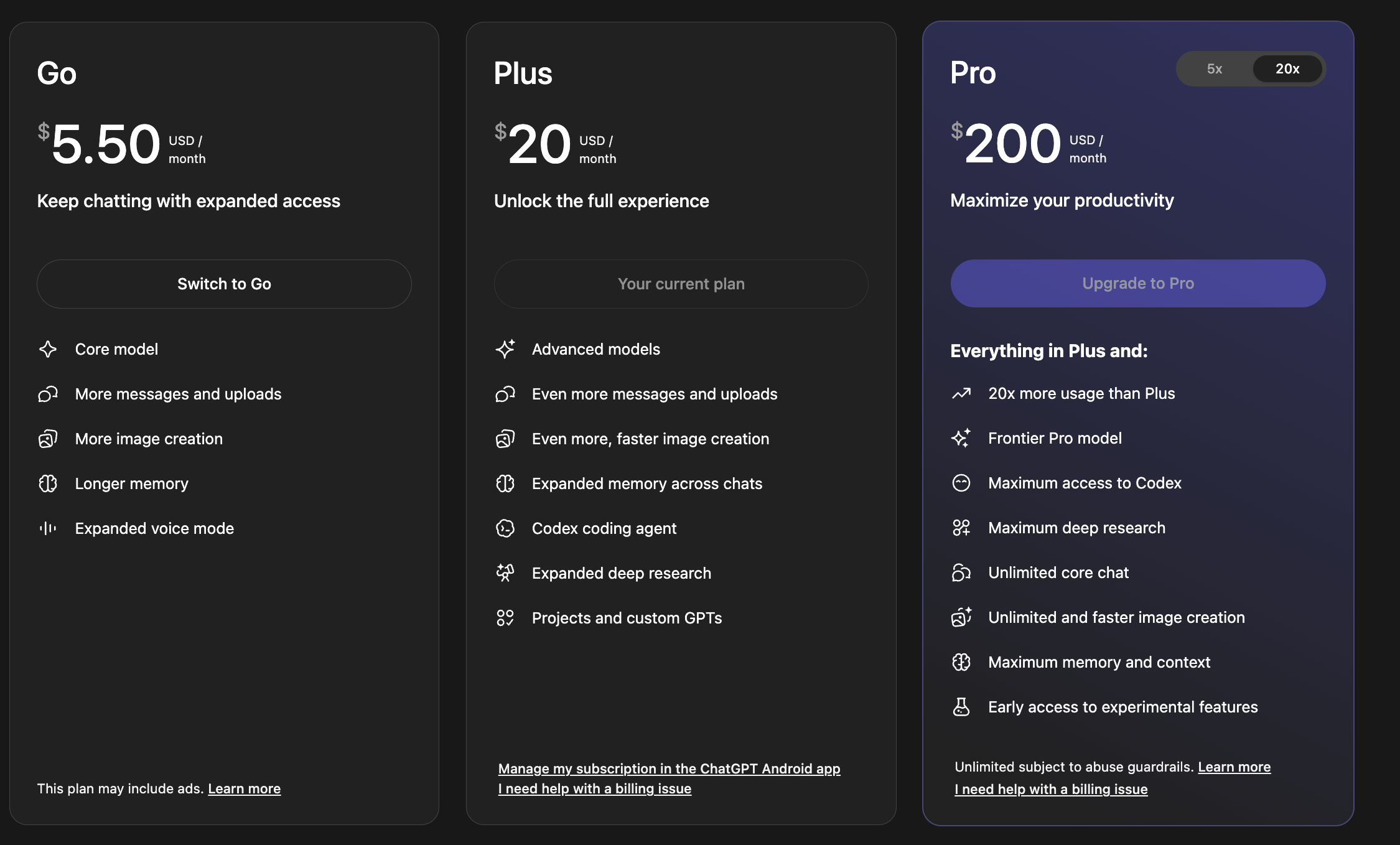⭐ Pro (план за $200):